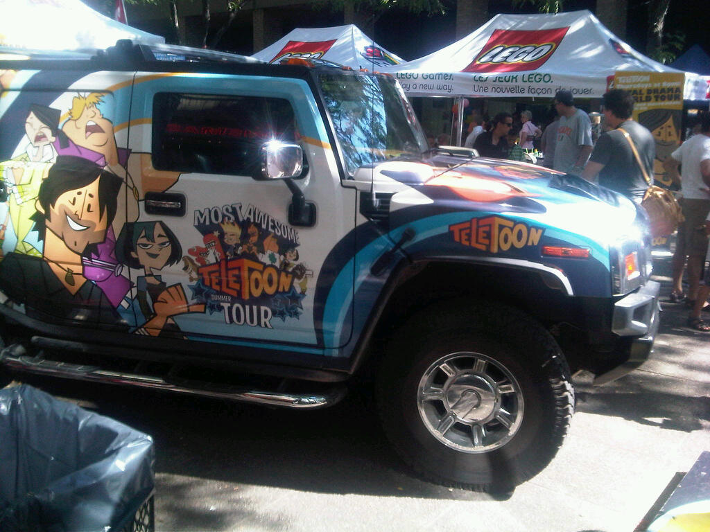 But,as the PR cliche reminds us: "what was hot is not". And, the above photograph of a Pimped Up Hummer bedecked in Teletoon logos and pictures of their popular cartoon characters, is now a record of what used to be. As leases expire across North American, the wildly decorated Hummer has become just another "So Yesterday" in the ever changing world of media PR.